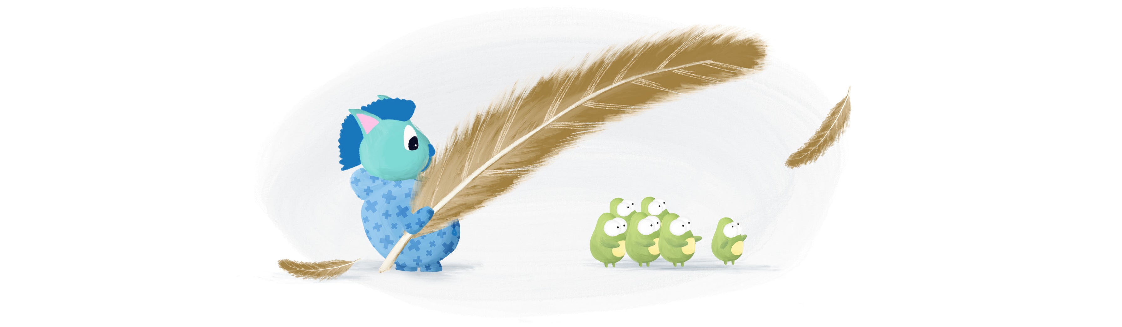Silly, wiggly, and never still, Squiggles is unpredictable and delightfully eccentric, often scribbling strange patterns in the air. Known for stealing the odd sock, his favourite food is spaghetti - the squigglier the better! He is an avid avoider of straight lines and boring rules.