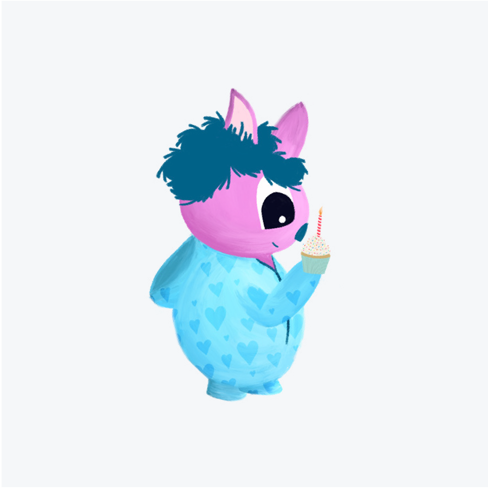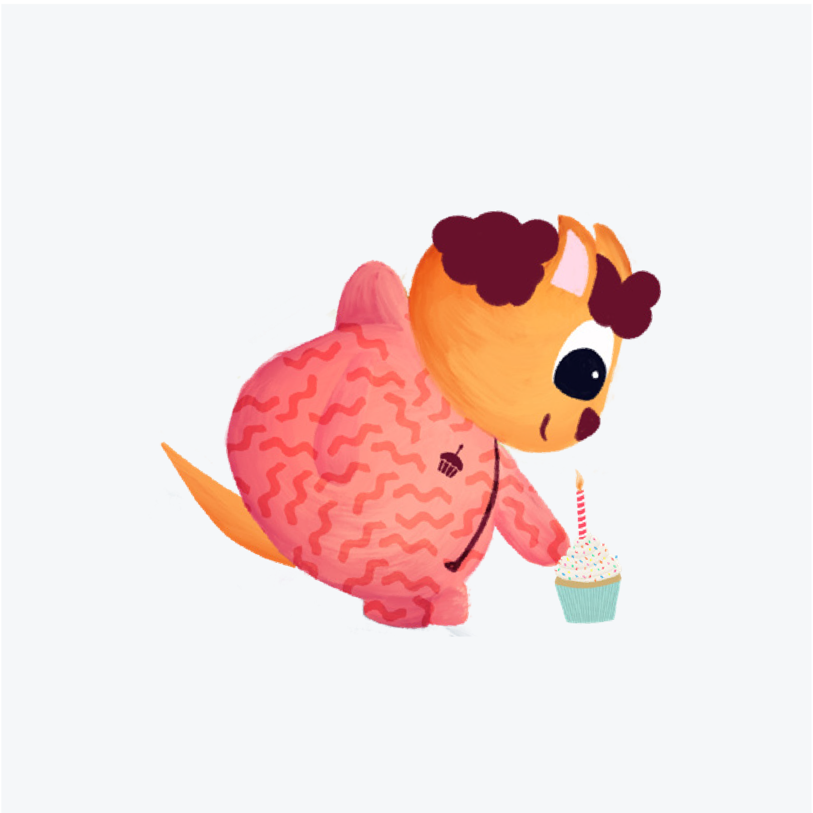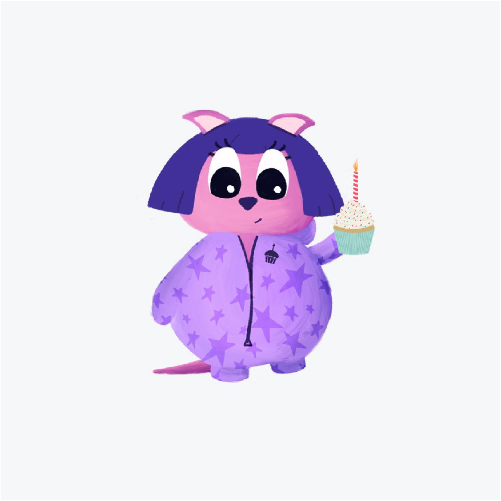 Sporty and adventurous, Hoops is always flipping, jumping, and bouncing. Competitive but kind, she brings playful energy to every Birthday Eve celebration. Her favourite food is nachos with extra cheese, and she doesn't like to sit still for too long.