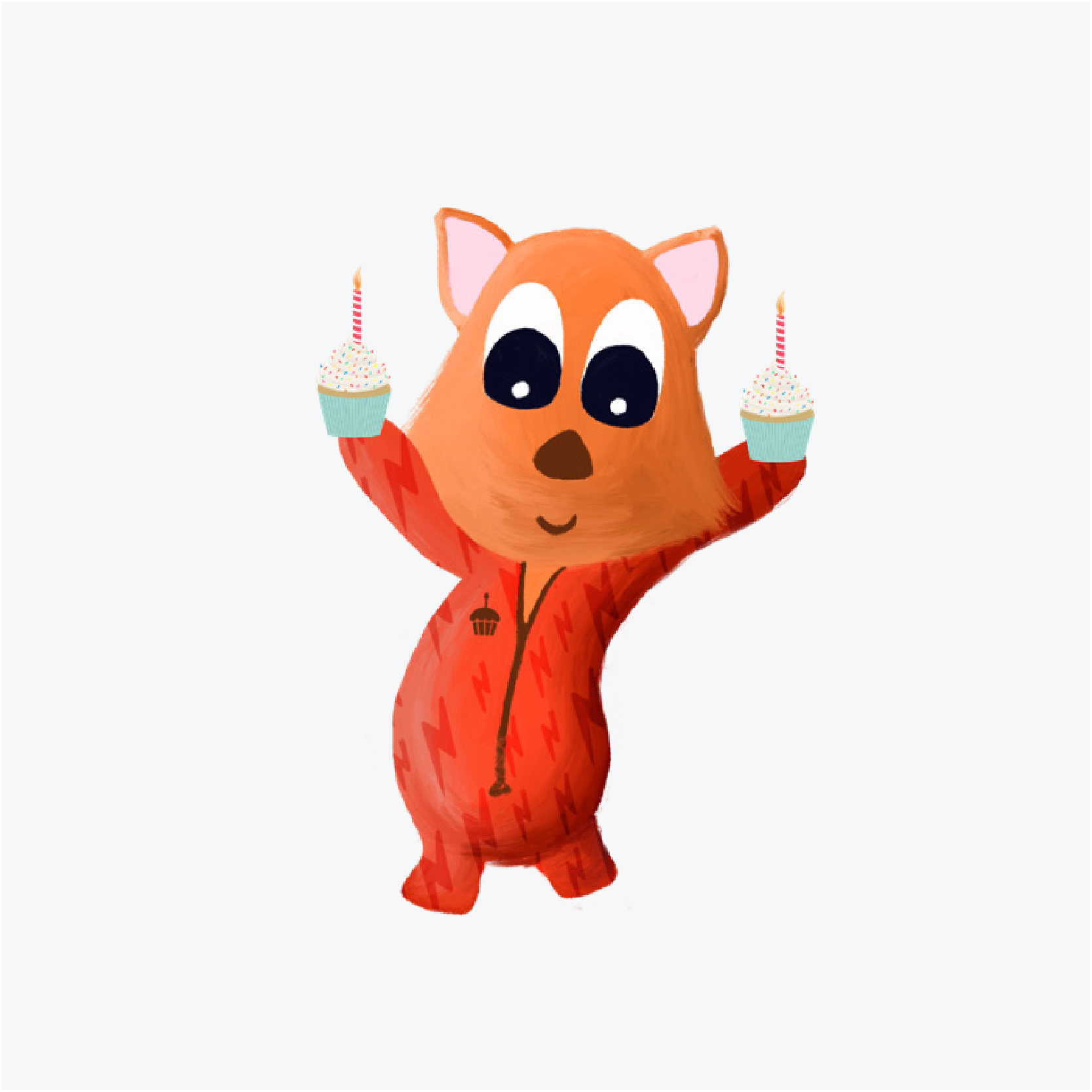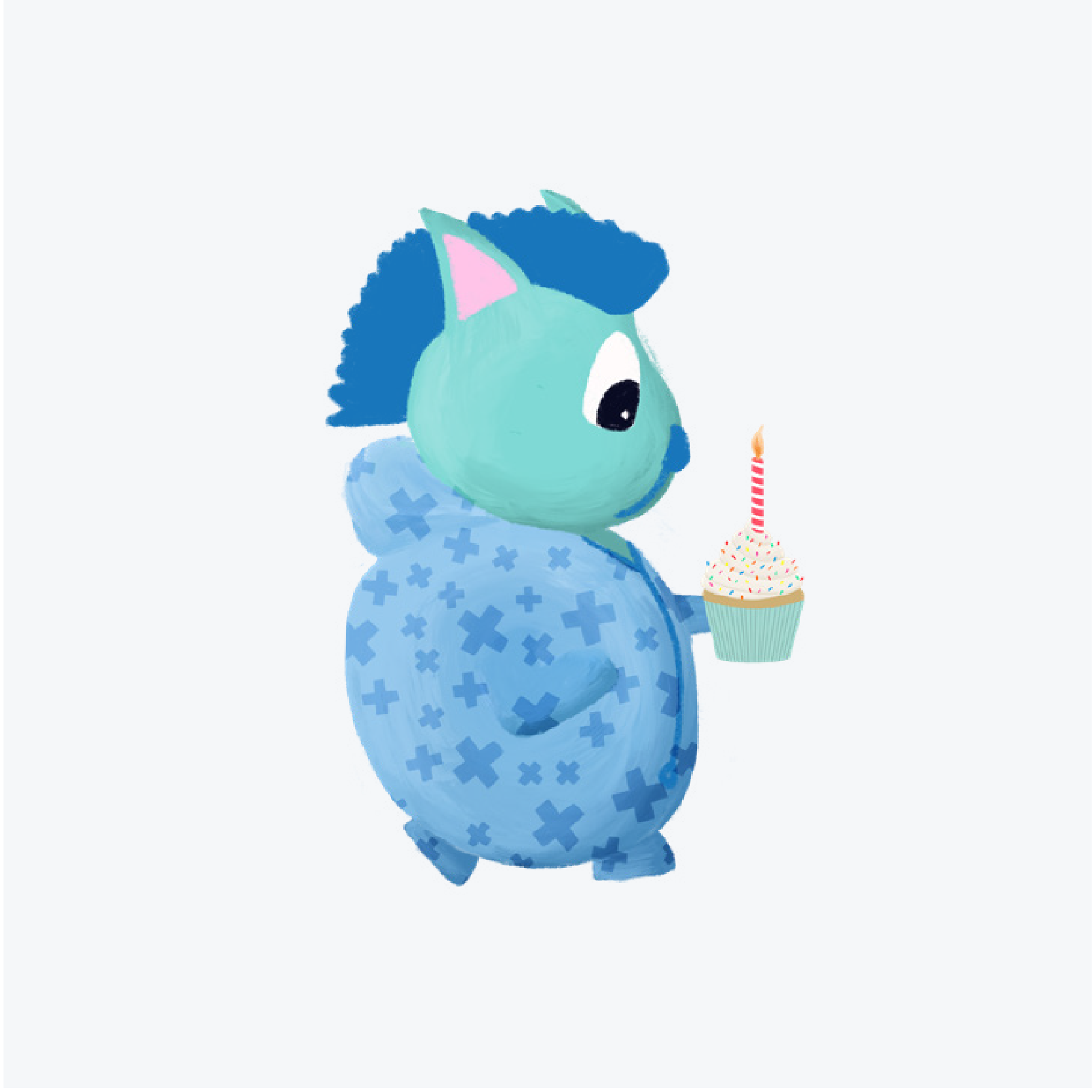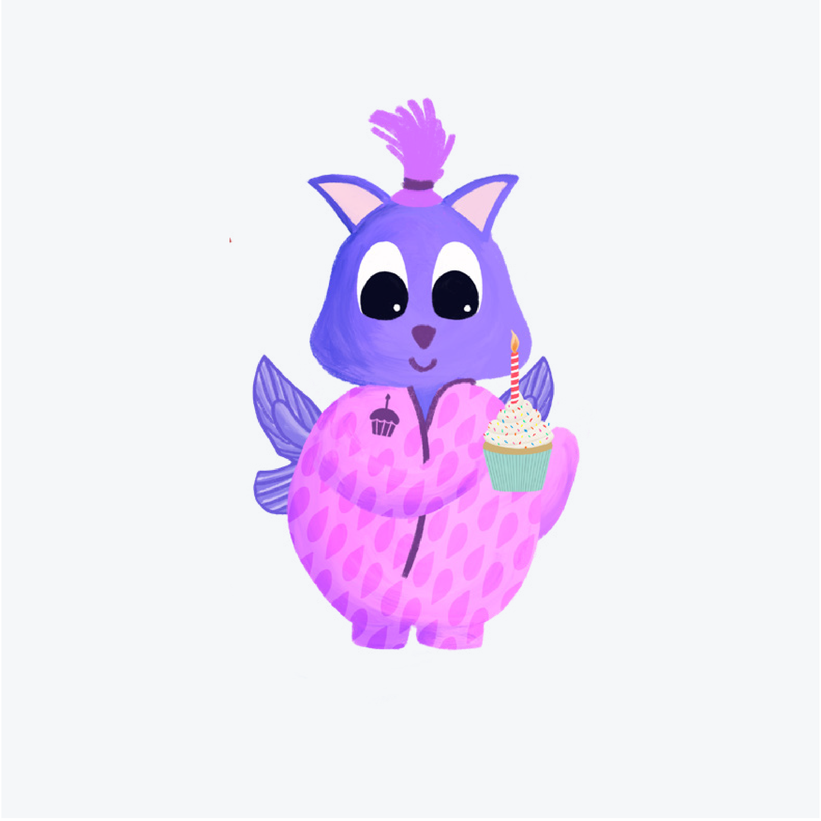 Sporty and adventurous, Hoops is always flipping, jumping, and bouncing. Competitive but kind, she brings playful energy to every Birthday Eve celebration. Her favourite food is nachos with extra cheese, and she doesn't like to sit still for too long.